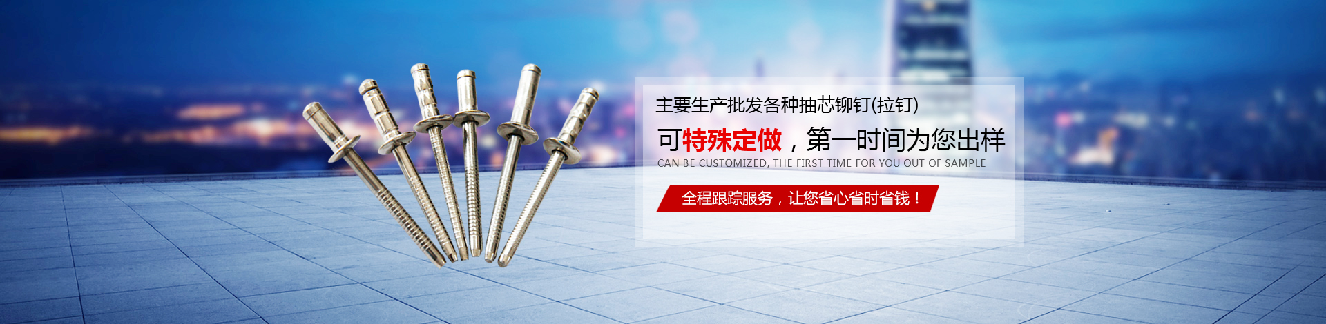 年產(chǎn)量達(dá)2億支以上。 主要生產(chǎn)批發(fā)各種抽芯鉚釘(拉釘),產(chǎn)品廣泛使用于集裝箱,航空箱,機(jī)箱機(jī)柜,酒盒,家具,建筑,汽車,軌道交通,飛機(jī)制造等諸多行業(yè)。是阿里巴巴的10多年誠(chéng)信會(huì)員,是華為、臺(tái)達(dá)等大企業(yè)的誠(chéng)信合作供應(yīng)商。